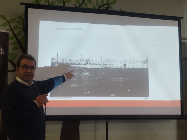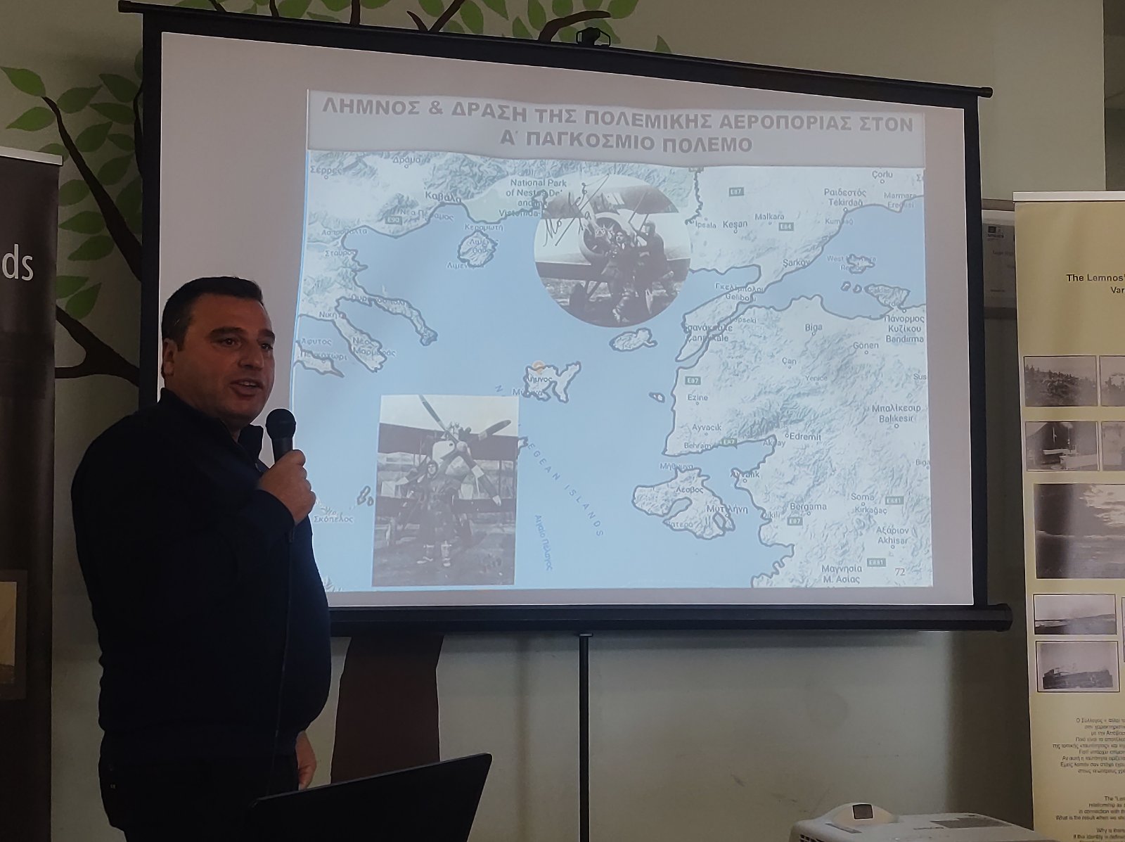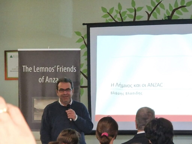 Στο γυμνάσιο Μούδρου πραγματοποιήθηκε η εκδήλωση με βασικούς ομιλητές τον καθηγητή Σλαβικών και Βαλκανικών Σπουδών του Πανεπιστημίου Μακεδονία, Ιστορικό Κο Βλάση Βλασίδη, τον Ε.Α. Υποπτέραρχο Κο Τσιπουρίδη Διογένη, καθώς και τον ΕλληνοΑυστραλό επιχ/τια Κο Νομικό Κωνσταντάκη. Όλοι μαζί βοήθησαν να τονιστεί η παγκοσμιότητα του project που αναφέρουμε, και το πόσο πολύ η ιστορία δημιουργεί δρόμους ανάπτυξης για τον τόπο μας. Επίσης πραγματοποιήθηκε σε συνεργασία με τον Πολιτιστικό Σύλλογο Μούδρου, φωτογραφική έκθεση με φωτογραφίες εποχής από το Imperial War Museum του Λονδίνου. Οι δράσεις στέφθηκαν με εξαιρετική επιτυχία και είχαν πολύ μεγάλη ανταπόκριση και από μαθητές και από γονείς αλλά και από φορείς των νησιών μας.